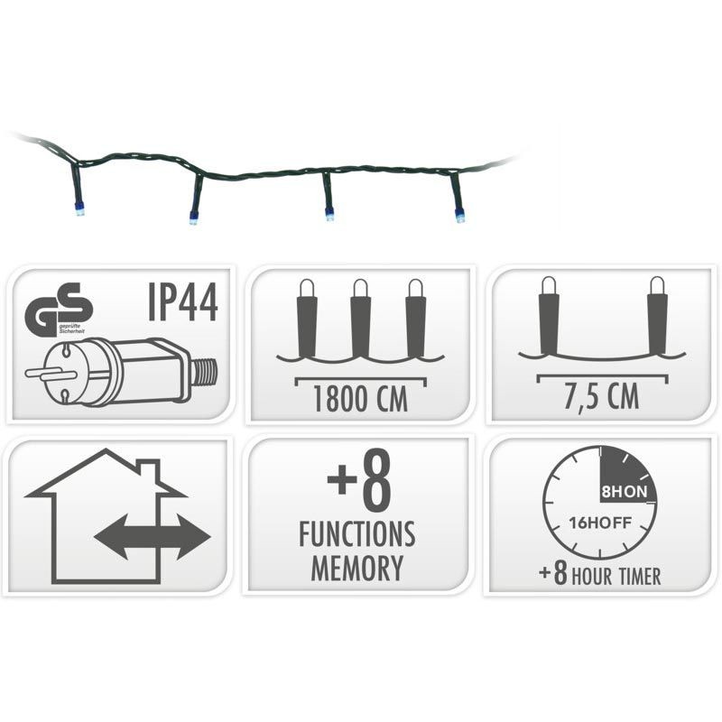 Kerstverlichting 240 led- 18m - Blauw - Timer - Lichtfuncties - Geheugen - Buiten